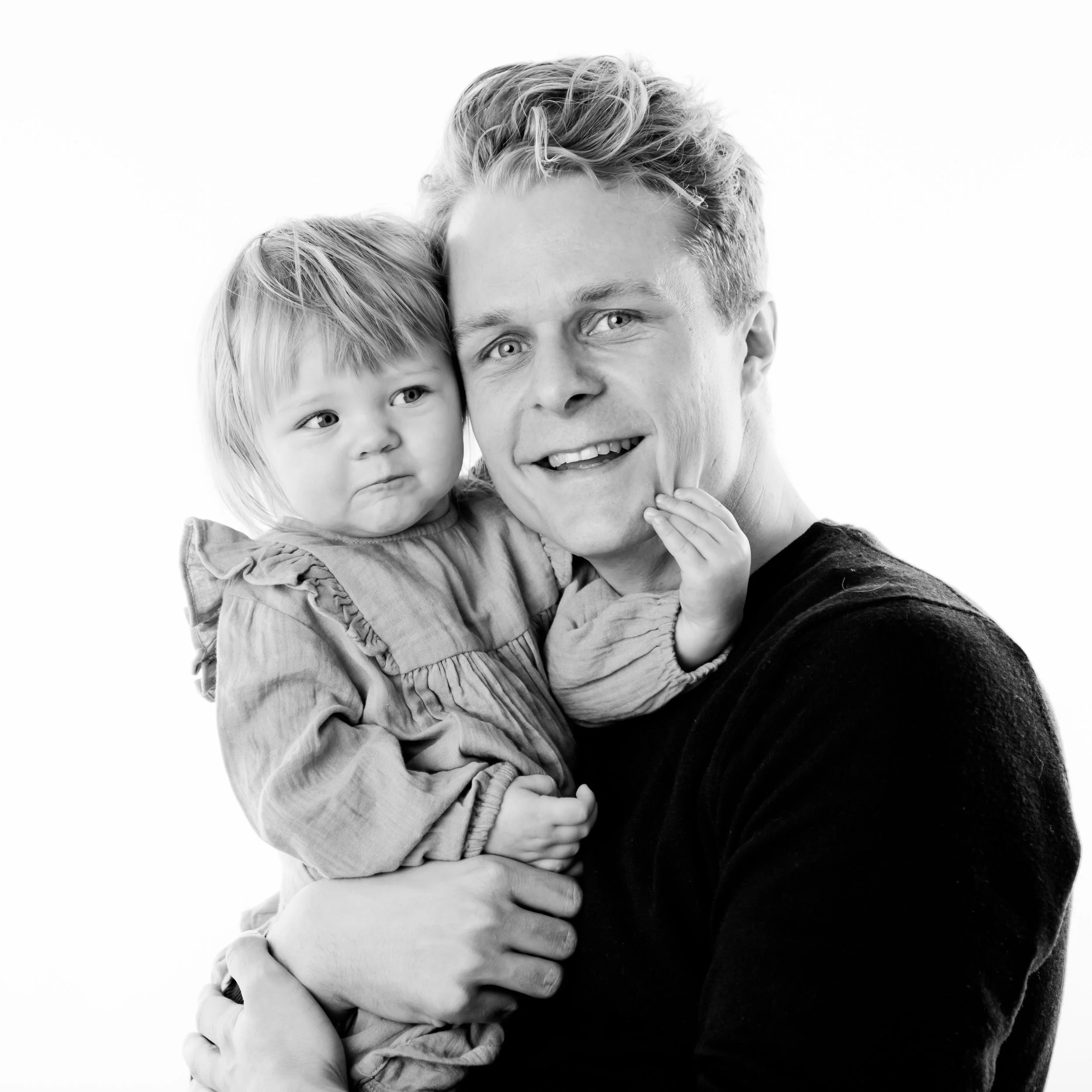 De enkla och tidlösa bilderna är oftast vinnare i längden. Visst är det väl något härligt familjebilderna där barnen får vara i fokus, inte en massa rekvisita och melerade bakgrunder, utan era barn (gärna med inslag av föräldrar). I min studio fokuserar jag på just familjen, rekvisitan är oftast vit och jag använder en vit bakgrund och golv. Blixtarna är satta så att det ändå blir en känsla av motljus i bilderna, vilket jag själv tycker blir väldigt fint. Lek, skoj och bus symboliserar min stil. Kan man få till en allvarlig bild också brukar det också blir väldigt fint. Jag har mina trick för att få barnens uppmärksamhet och är ni som föräldrar avslappnade och stressfria brukar resultatet alltid bli väldigt bra! Välkommen att boka din familjefotografering!