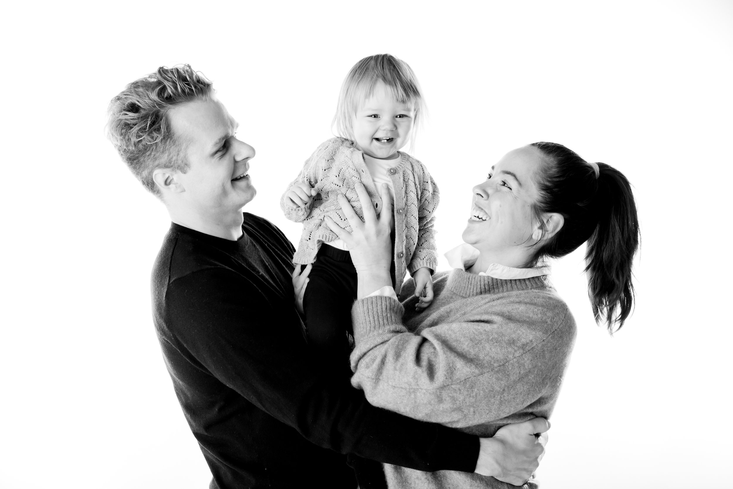 Studiofotografering av familjen i Sollentuna